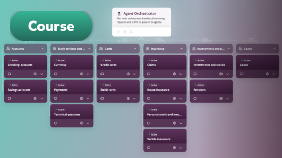 Agent orchestration is a setup that allows us to build several independent agents that are then connected through the agent orchestrator. The agent orchestrator decides which agent should answer which questions, and if no agent fits it handles the rest...