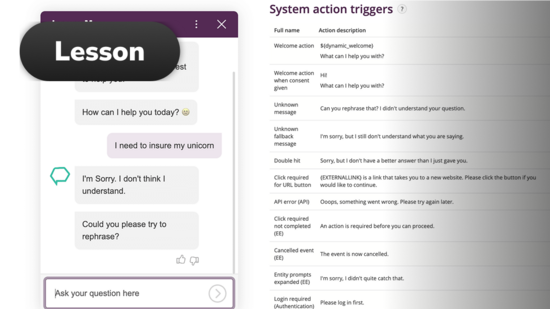 System actions trigger when a specific situation occurs and they allow our AI agents to recover the conversation and give the user a way forward. In this course, we cover how they do that and what we should think of when designing the following system actions: