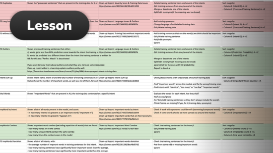 The downloadable clean-up report is a spreadsheet document full of data you can use to diagnose and potentially improve your prediction model, but first you need to know where to start. This course covers several pages in the clean-up reports, how to read them and how to use them to make improvements. It also contains tips and tricks on what to work on first and when you should prioritise the different reports.